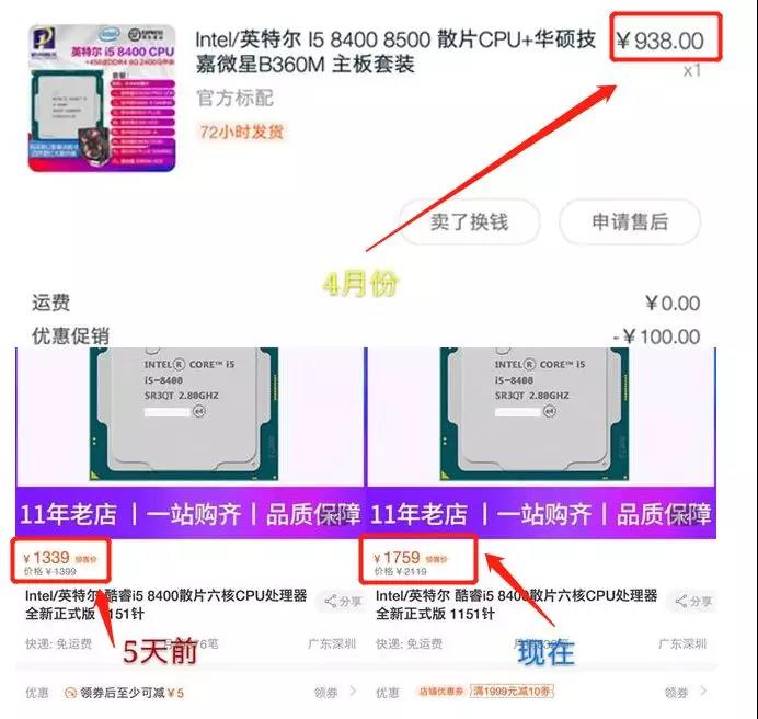 网友纷纷抱怨:Intel的处理器(包括7代和8代)散片价格几乎翻倍了,盒装价格也涨了不少。难得内存降了点、硬盘历史最低了、显卡价格也正常了,谁都没想到CPU来搞事了。