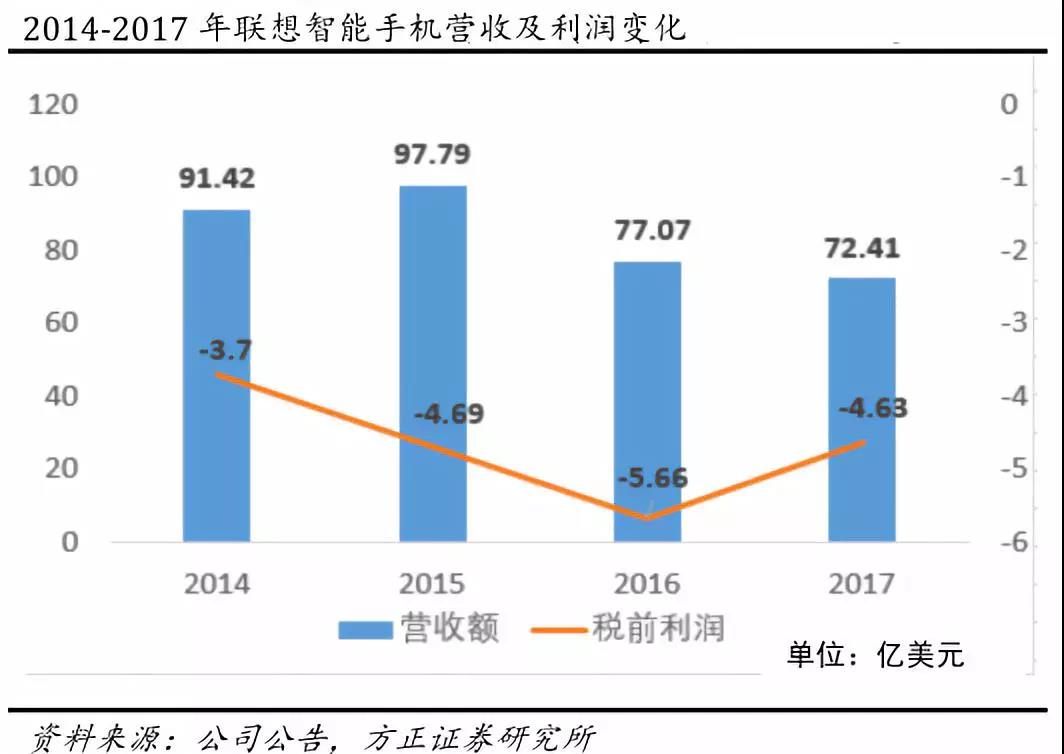 ①中国市场:据调查机构GFK统计,联想集团手机2017年在国内的总出货量仅为179万台,不足华米OV的一个零头,只能勉强排到国产手机第十名的位置。