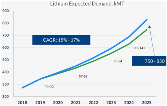 尤其是随着新能源汽车的快速发展,动力电池的巨大需求将推动锂资源的快速增长,预计在2018-2025年其年复合增长率将达到15%-17%。