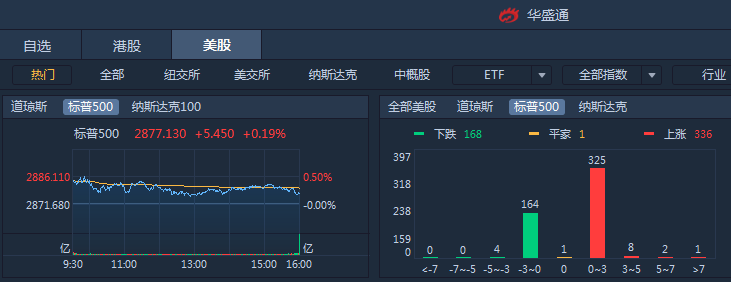 周一标普、纳指止步四连跌,截至收盘标普500涨0.19%,道指跌0.23%,纳指涨0.27%。