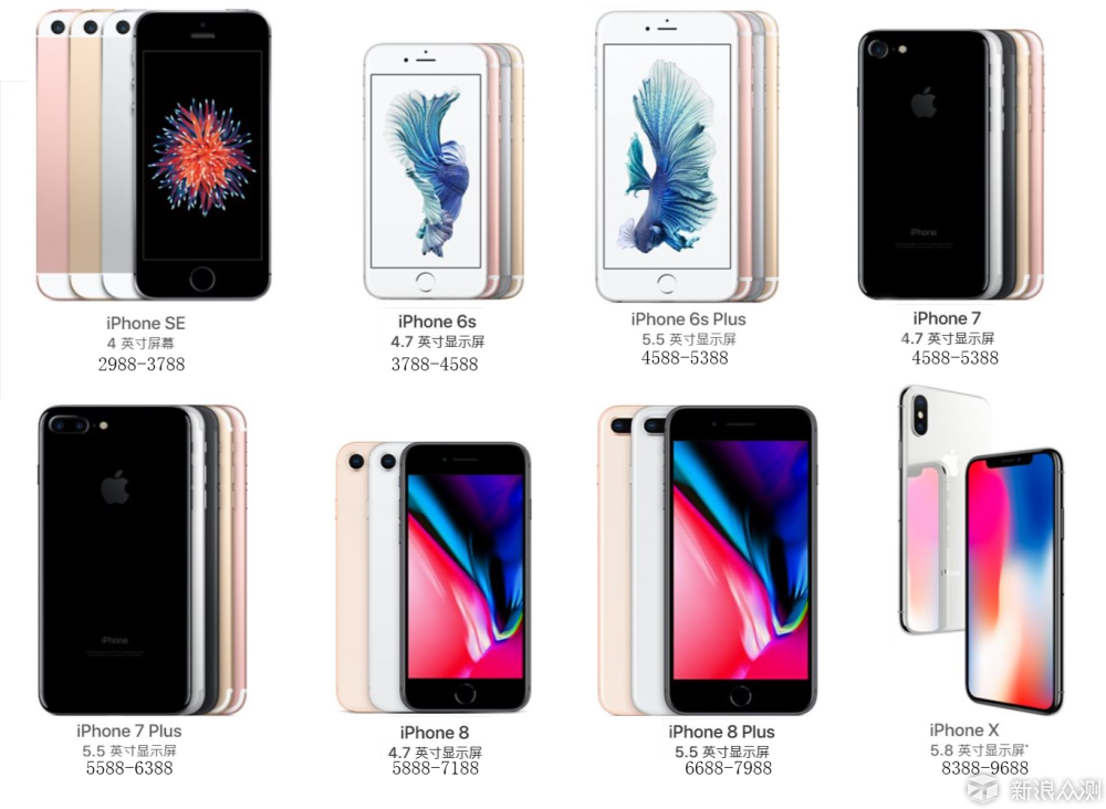 抛开种种传闻的价格版本,根据新浪众测上记录的去年iPhone 8发布时在售机型的价格,我们自己似乎也能得到一些定价规律。