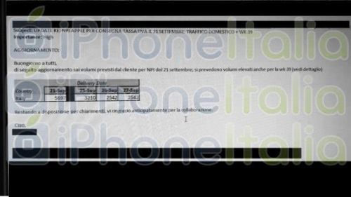 这家快递公司是苹果在意大利和其他很多国家的航运合作伙伴,内部信息还显示,9月25-27日,他们将迎来第2波高峰,工作量将比21日略有下降。可以猜测,这也许是iPhone在意大利第二批发货的时间。
