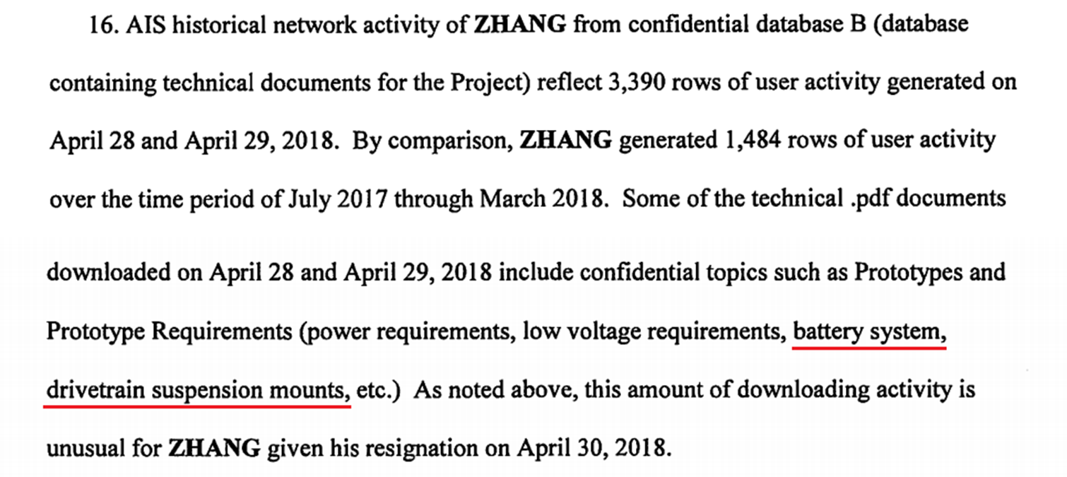 证据2。同样来源于上述案子,而且更具说服力。如下图红线部分所示,如果苹果该项目仅仅是为了无人驾驶技术,就不会投入精力去研究电池系统和动力传动系统悬挂支架,而这都是制造电动车所需要的技术。