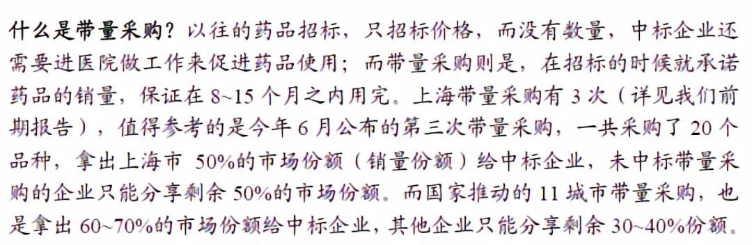 但是我们预想是等到带量采购完成,一大批仿制药企毛利率开始大幅下滑,在报表上反应时,医药股才开始大幅杀估值,现在带量采购刚公布,而且只是11个地区公立医院试点,仍未全国推行就跌得这么激烈,市场上还是有很多聪明人的。