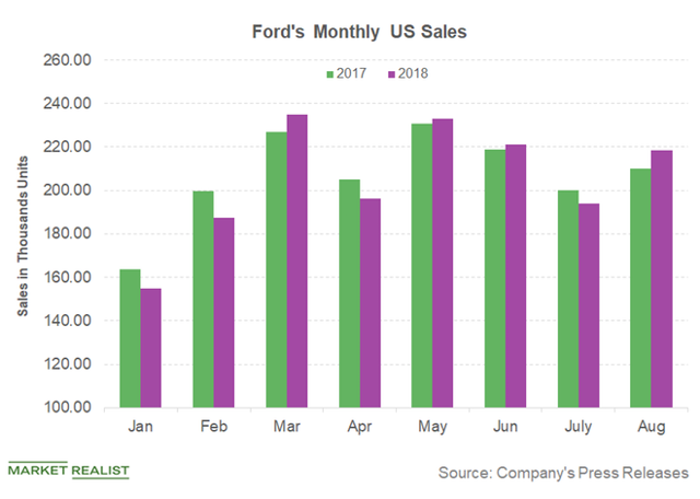 利好消息是,福特的F系列在今年8月一直保持着美国最畅销的皮卡的地位。2018年8月,福特在美国市场销售了218,504辆汽车,同比上涨4.1%,如下图所示。这是个好转的迹象,因为7月份销量下降了3.1%,低于同期丰田的销量。