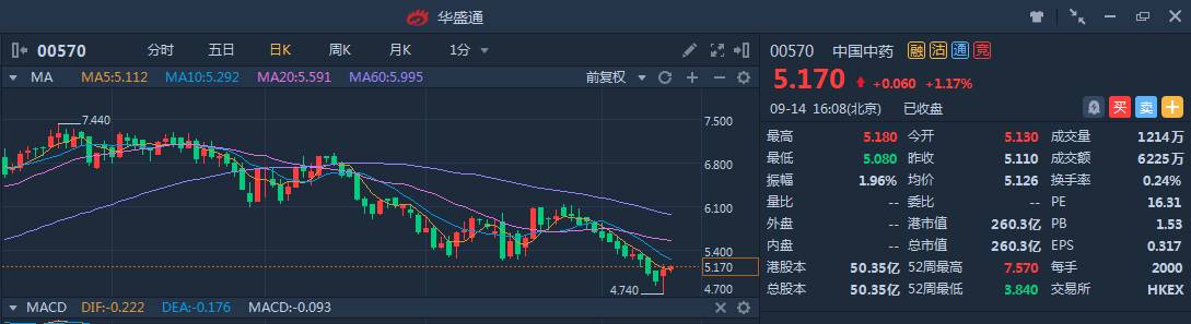 截至2018年6月30日止之半年度业绩为营业额增长40.1% 至 54.61 亿元人民币,税后盈利上升27%至7.6亿元人民币。期内整体毛利率微跌两个百分点至53.7%。可于现价5.17元附近吸纳,中长线可见7元,跌穿4.35元止蚀。