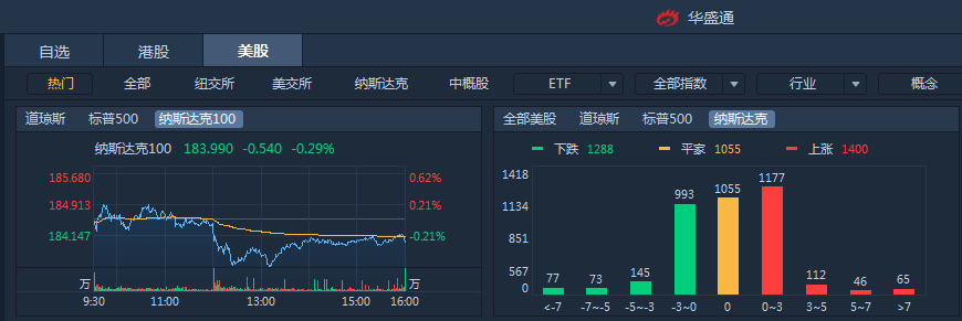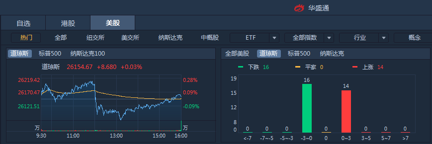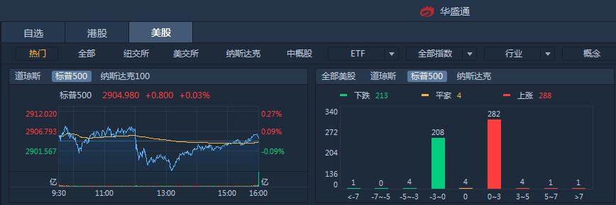 上周五美股高开后盘中跳水,临近尾盘跌幅缩窄,三大股指近乎收平,标普500指数收涨0.03%,道指涨幅0.03%,纳指收跌0.05%。