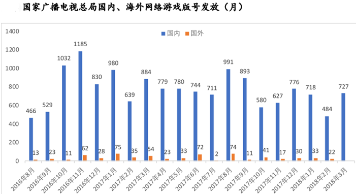 2016年至今国内网络游戏版号月均发放768个,2017年发放9384个,但是占据行业头部的游戏厂商占比绩效,其份额仅占1%左右:腾讯、网易年均手游数量为50款,IGG、金山更低,仅为10款左右。因此,网络游戏总量调控对于龙头公司的影响极小;而且在“供给侧改革”之后,去粗存精,优质作品产品周期有望延长,市场集中度将会提升,利好于龙头企业。