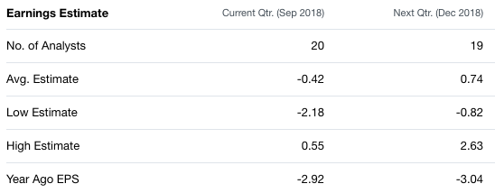 空头做空特斯拉的一大理由就是特斯拉在3季度无法实现盈利,他们认为随着产量增加,特斯拉的生产和资本支出同样会大幅增加。但如下图所示,空头有关盈利的预测也有所分歧,而且多数认为特斯拉在4季度将会实现盈利。