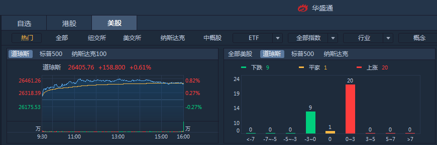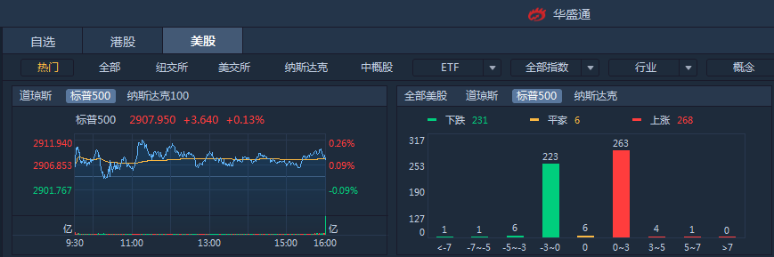 昨日标普、道指接近历史新高,科技股拖累纳指微跌,美股三大指数涨跌不一,标普500指数收涨0.13%,道指收涨0.61%。纳指收跌0.08%。