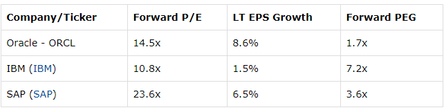 公司在现金方面有一定优势,在手现金高达435亿美元,为进一步投资提供基础,不过也值得注意债务接近581亿美元。同其他巨头相比,公司的估值相比处于较低水平,按8.6%的EPS增速PEG不足两倍,低估值与公司的低增速相匹配。