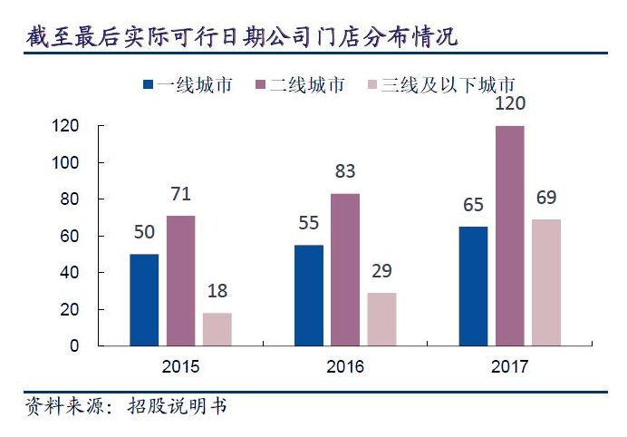 据2017年财报显示,呷哺呷哺光2017年一年共开设155家新门店,全年营收达36.64亿元,同比增长32.8%,新门店扩张的同时带来了营业额的大幅提升。从海底捞招股书中可以看出,近三年海底捞同样采取疯狂扩张的模式,并且逐渐向二三线城市下沉。二三线城市开店成本更低,且拥有强势品牌效应的海底捞深得二三线居民的喜爱。