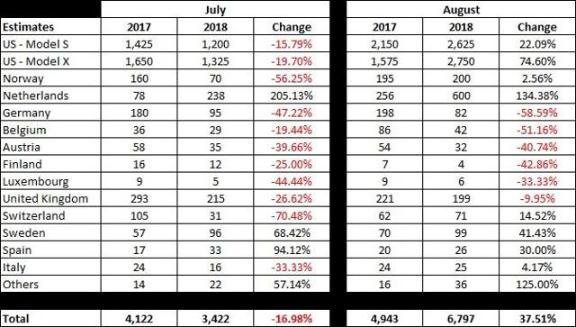 Model 3之外的Model S/X车型当前仍然为公司带来大量毛利,为达成年度目标,这两款车型公司在下半年每季度需要平均交付2.8万辆。目前,从第三方给出的预期看,欧美市场表现不错,中国地区很可能因为关税问题需求疲软。笔者预计本季度交付2.7万辆,而产量相比略低一些,最后库存很可能下滑。
