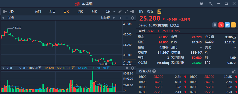京东股价近期受刘强东案的下跌跟过去阿里巴巴受到造假指控引发的股价震荡非常相似,两者的共同点在于案件的总体风险对公司的基本面没有实质性的影响。目前,公司股票的交易价格低于雅虎财经的35个目标价。京东最悲观的目标价是每股24.99美元,高于目前的股价。对京东的最新降级实际上是一次升级,MKM Partners将其价格目标从每股51美元下调至美股41美元,仍然要远高于目前股价。