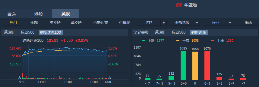 市场消化美联储加息决议,周四美股三大指数普涨,标指收涨0.28%,道指涨幅0.21%,纳指涨幅0.65%。