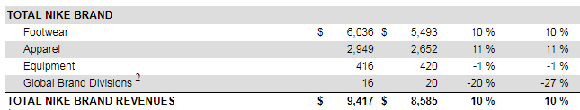 除了占比较低的设备分部收入下滑以外,鞋及衣服两大最重要的分部增速与营收增速相当,说明公司的主营增长相当健康,这里下滑明显的全球品牌部门分部代表的是品牌授权业务,业绩基数极小。营收大幅增长的情况下,商品库存还同比持平,反映出需求保持强劲。