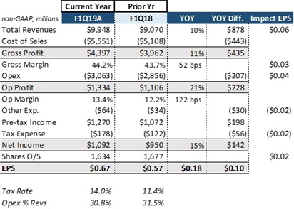 季度EPS 67美分,也高于分析师此前预计的每股盈利63美分,季度税率为14%,相比上年提升近3个点,如果税率持平,笔者预计EPS还将有2美分的提升。