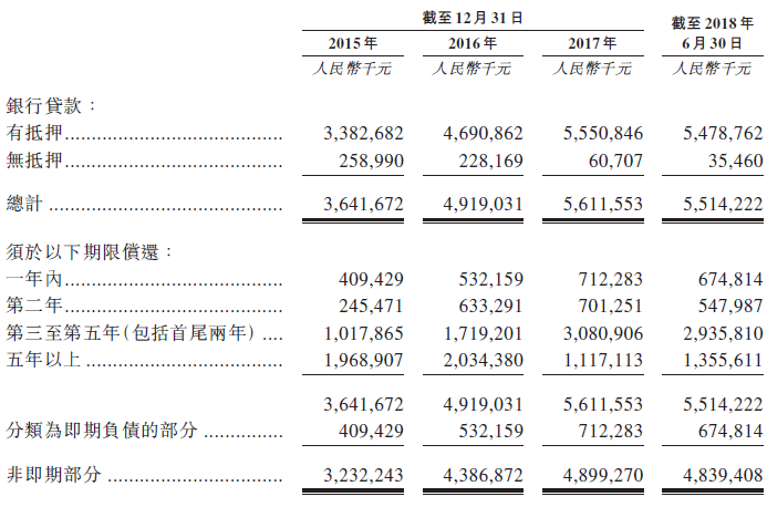 为有效完成收购及业务开展,公司从银行申请大批贷款,截至2018年上半年贷款余额总计为55亿人民币,其贷款年利率于2015年、2016年、2017年及2018上半年分别为3.60%至6.90%、2.75%至6.23%、2.75%至6.34%及2.75%至7.00%。抵押或担保贷款以开发中物业及在建工程开发项目按揭、若干Club Med附属公司若干股份、应收款项及银行账目质押,并由复星国际共同控制下的一间同系附属公司担保。