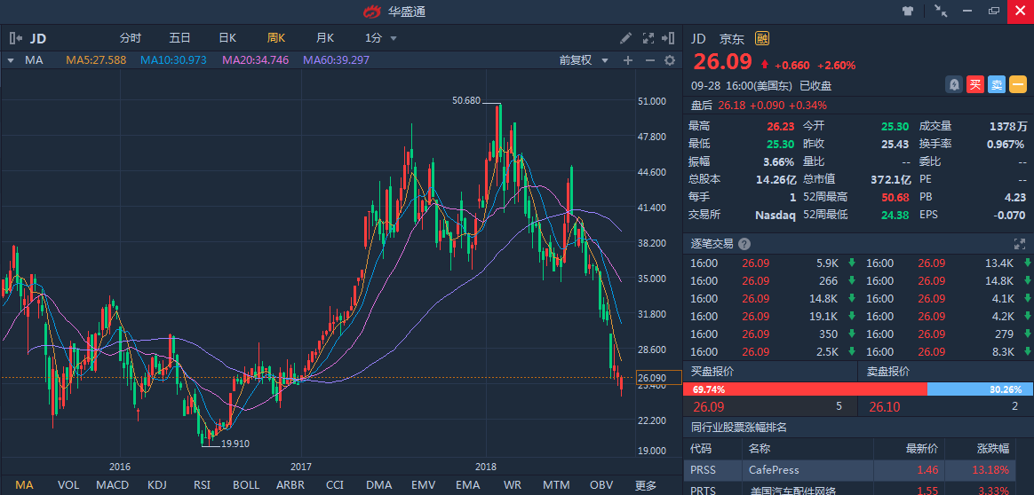 国内第二大电商京东(JD)自1月股价到达高点(50.68美元)后,一路下滑调幅超过40%,其中的影响因素包括贸易战担忧、阿里拼多多等对手的竞争,以及近来沸沸腾腾的刘强东性侵案,下文简单谈谈仍看好公司的几大理由。