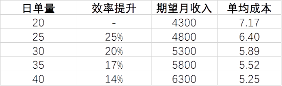 那么未来单均骑手成本能够下降到什么程度?以目前平均日单量25单、单均成本6.4为基准可以推出骑手目前的平均期望收入为4800元。如果未来配送网络效率持续提升,只要增速快于人力成本上涨,那么就有望将单均骑手成本进一步下降至5~6元的水平(上表仅做参考)。