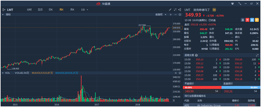 而由于特朗普的上台,美国大幅提升国防开支,2017年国防预算提升10%,2018年更是签下总额高达7160亿美元的2019年国防授权法案,军费再次创下历史新高。军工企业自身的逆周期性,成为股价上涨的支撑。
