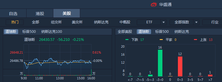 周二,道琼斯跌幅0.21%;标普500指数收跌0.14%;纳斯达克涨幅0.03%。