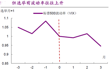 虽然执政党如果中期选举失利对于美股市场大趋势没有影响,但是在选举前一个月标普500波动率指数上升,表示市场会提前反应。