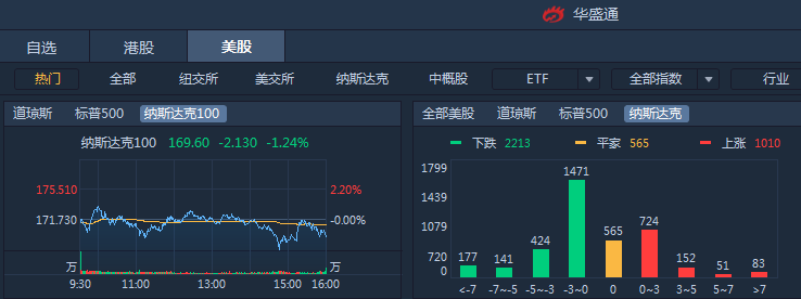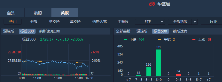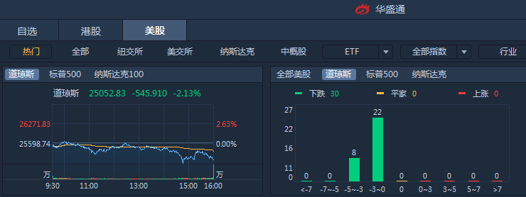 周四美股继续下跌,道琼斯跌幅2.13%;标普500指数收跌2.06%;纳斯达克跌幅1.25%。