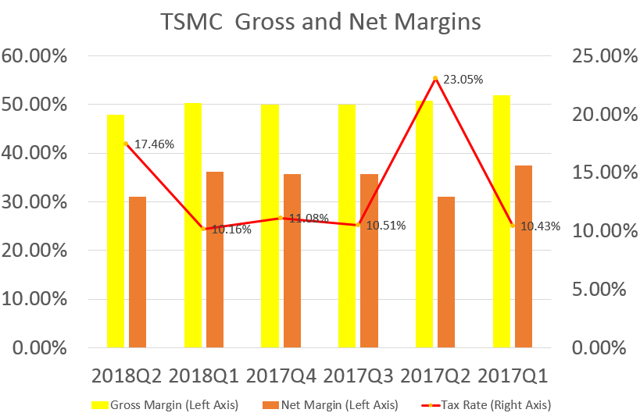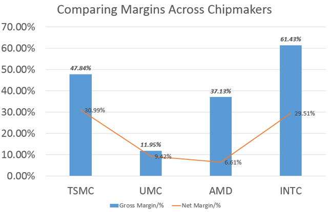 这使公司成为为数不多的高利润率芯片制造商之一,竞争对手对手英特尔毛利率为61%,净利率为30%,而UMC和AMD在最近一个季度净利率不到10%。