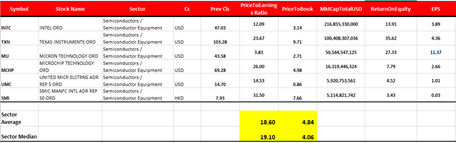 图7:拥有设备制造能力的半导体公司平均市盈率约为18.60倍