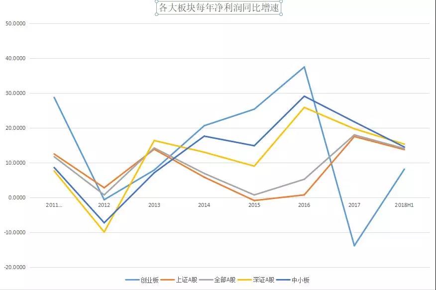 假使现在有一个过滤器,可以把所有上市公司的财务水分(利润增速波动、财务造假等因素)过滤掉,过去7年中创业板的整体利润增速就不一定比其他版块高了。