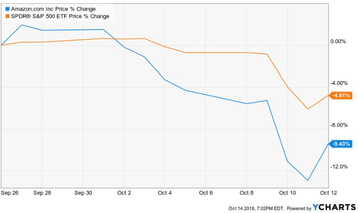 今年公司市值曾经创造历史,从每股约1280美元涨到高达2039美元,市值突破1万亿美元。但在过去一个月的市场波动中,公司股价急剧下跌,跌幅超过标普500平均水平,具体见下图: