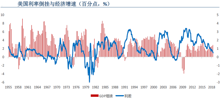 历史数据显示,利率倒挂领先于经济衰退和故事调整,自1950年以来,总共发生10次利率倒挂,最终由9次导致经济衰退,另一次发生在1960年代中期,利率倒挂后经济增速放缓。
