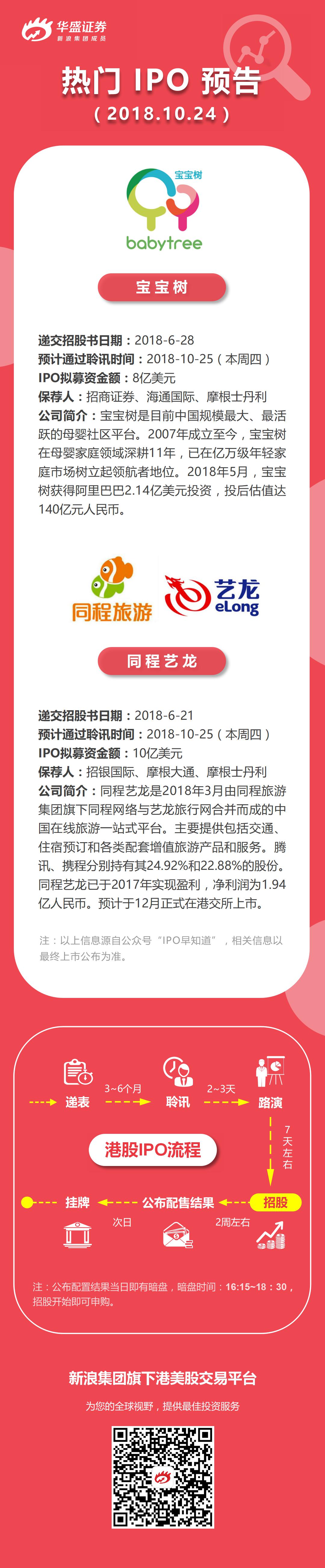 热门IPO追踪 | 宝宝树、同程艺龙预计本周四通过聆讯