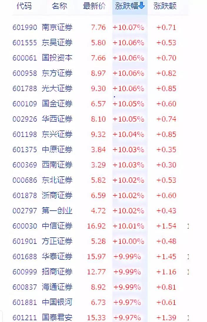 券商股当之无愧成为引领这一天大涨的领头羊,当天A股上市券商股几乎全部涨停,跟踪券商指数的券商ETF也以涨停收盘,是自2016年券商ETF上市以来首次出现涨停。