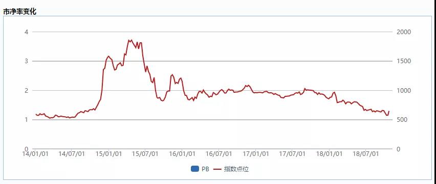 随着券商指数的持续下跌,券商股的估值也创下了历史最低。由于券商股属于典型的强周期性行业,使用市盈率PE估值不能准确地反映券商股的实际估值状态,因此我们采用相对合理的市净率PB数据作为观察券商股估值的依据。