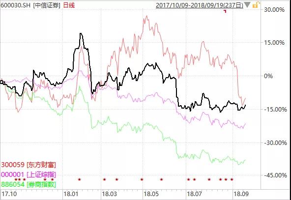 因此,我给自己和朋友配置的券商股,只有东方财富、中信证券两只标的。从市场表现来看,这样的券商股搭配模式,远远跑赢了其他券商。