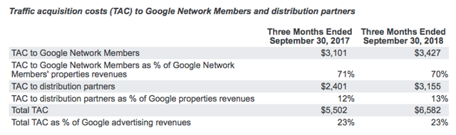 营收不佳的原因除汇率损失外,主要是流量获取成本增加。第三季度公司向分发合作商和网络伙伴支付的流量获取费用增加约11亿美元,分发合作商成本占比也从营收的12%上升至13%,但流量获取费总额占比持平,仍然为23%。所以成本增长速度并未超出营收增长速度,因此投资者无需过度担忧。