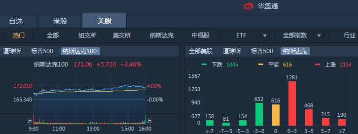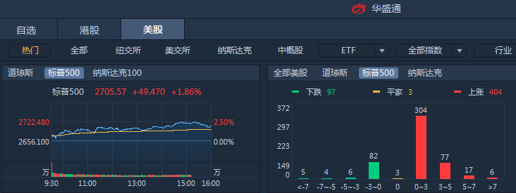 周四美股大幅反弹,标普500指数收涨1.86%,道琼斯涨1.63%,纳指收涨2.95%。