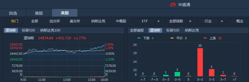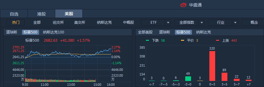 昨日美股巨震后大幅上涨,科技股、金融股、能源股多数上涨,三大股指均收涨,道指上涨1.77%,标普收涨1.57%,纳指上涨1.58%。