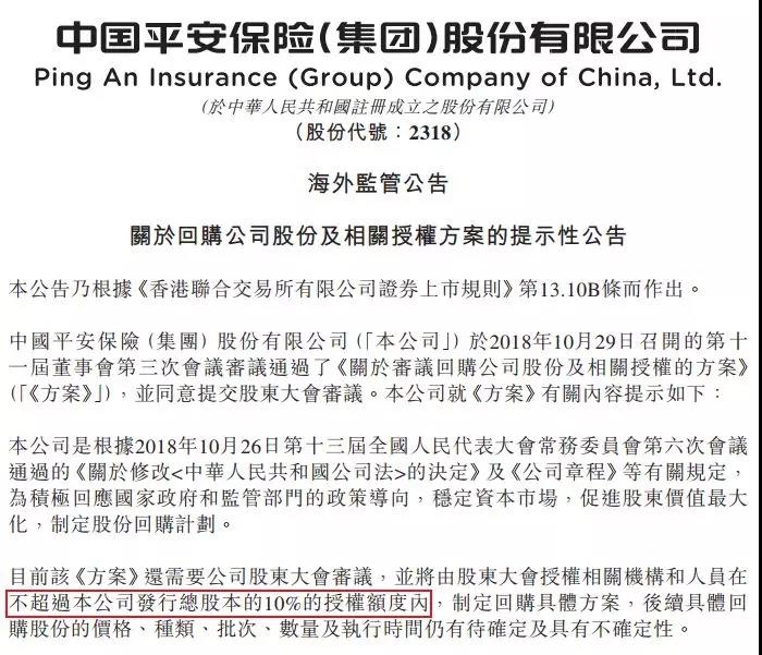 不过可能是有茅台为鉴,发完季报没过多久,平安又补报了一个启动回购的公告。