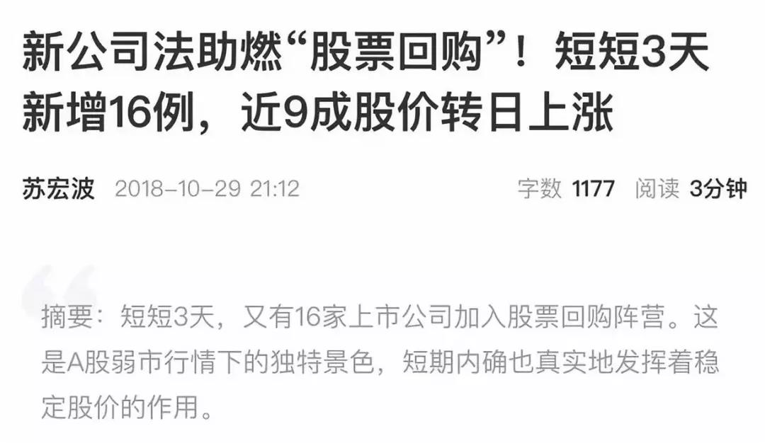这种回购,不但不会创造牛市;相反,一旦出现,要赶快逃命。