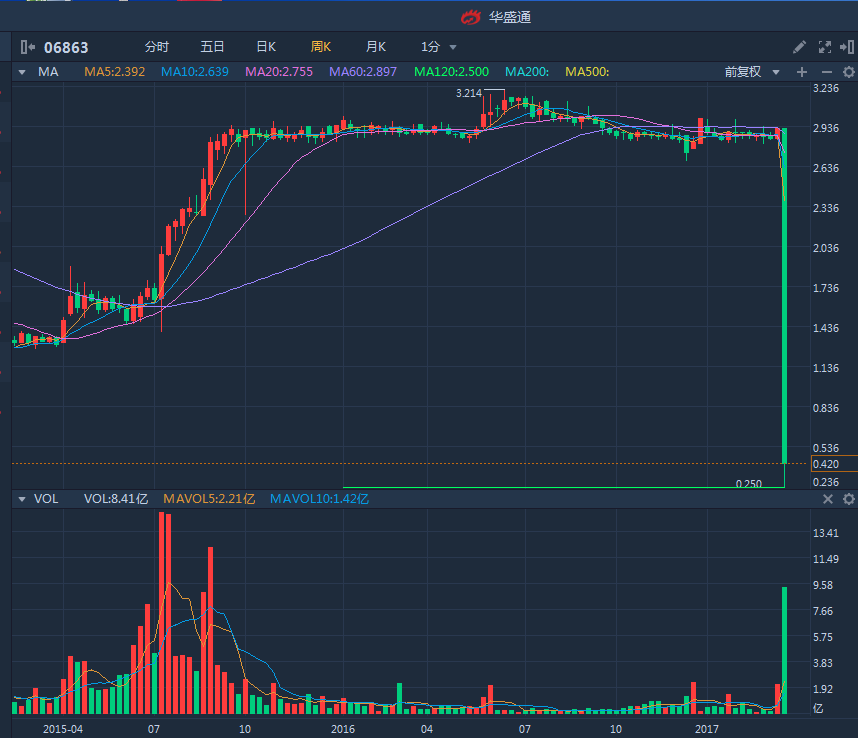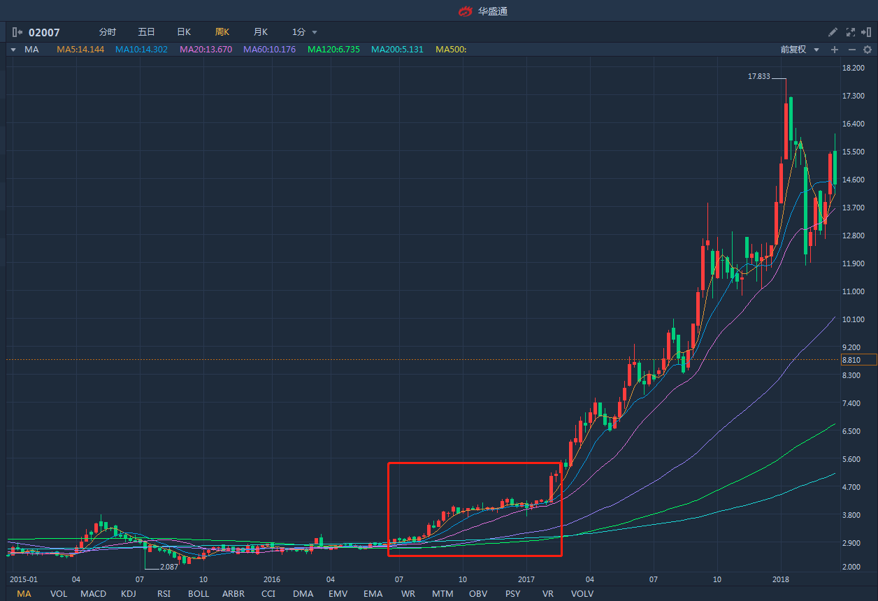 图片来源:华盛证券;碧桂园股价周K线图(2016~2017)