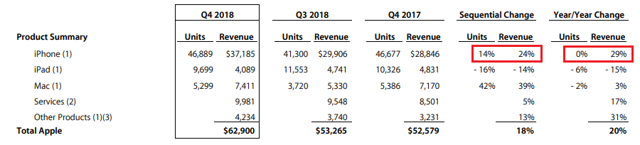 对比来看,公司2018年Q1营收为883亿美元,毛利率为38.4%,那么按照预期,2019年第一季度营收仅增长3%。管理层解释说,外汇市场的不利因素、iPhone发布的时机以及一些新兴市场的不确定性等因素综合导致了业绩指引的不佳。