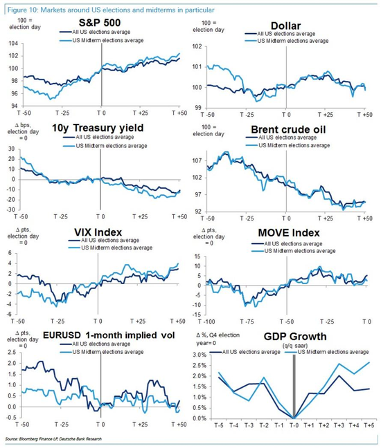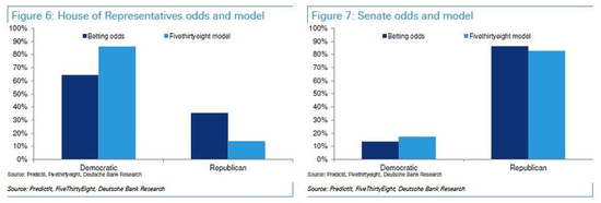 德意志银行指出,历史上中期选举中,总统所在政党平均流失26个众议院席位和4个参议院席位。如果这种规律成立,民主党在本次中选后将控制国会。