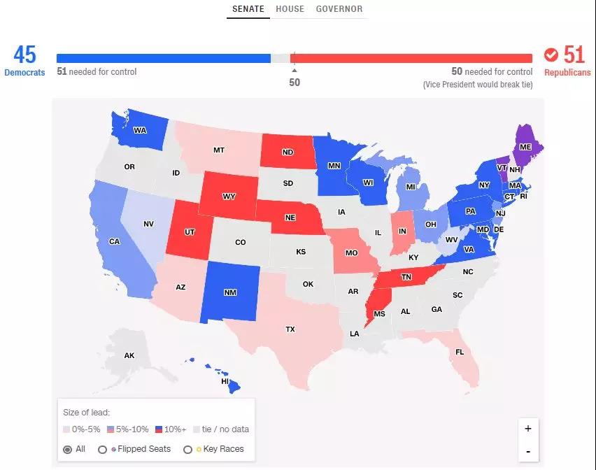 美国中期选举尘埃落定,符合市场预期 —— 共和党控制参议院,而民主党则占据众议院。