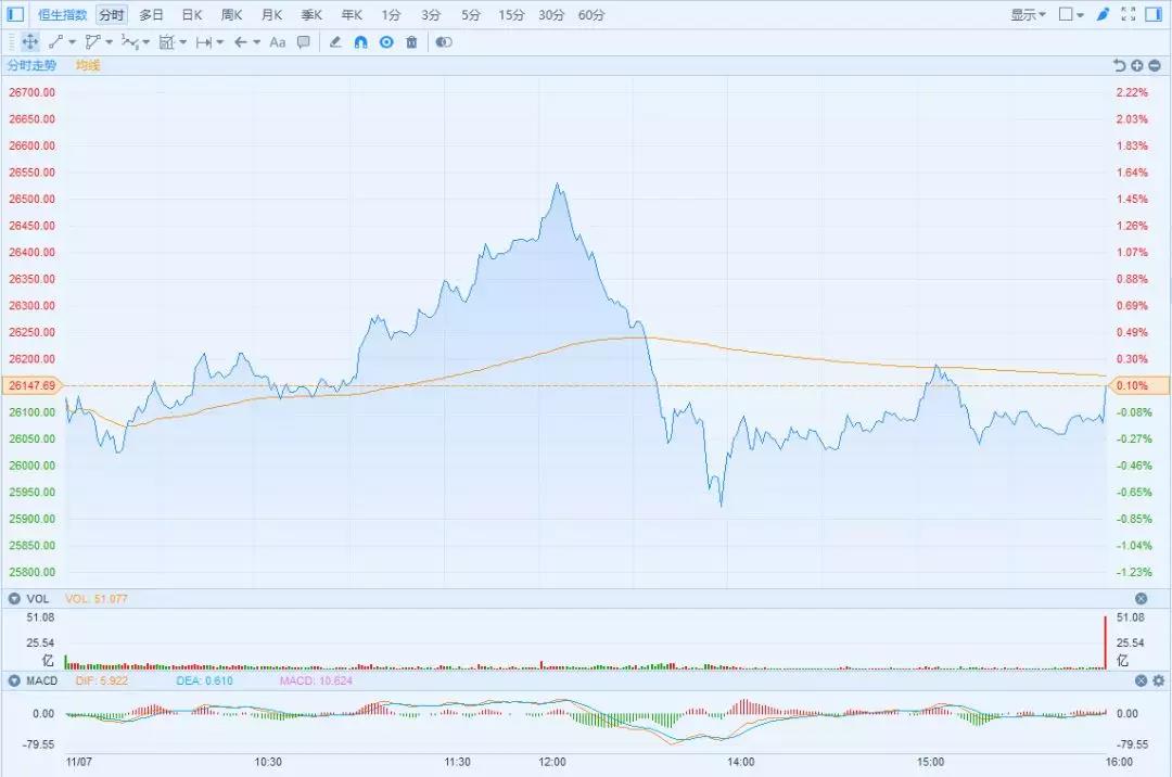 香港恒生指数早盘涨幅1.5%,午后直线插水翻绿,收盘勉强翻红,收涨0.1%