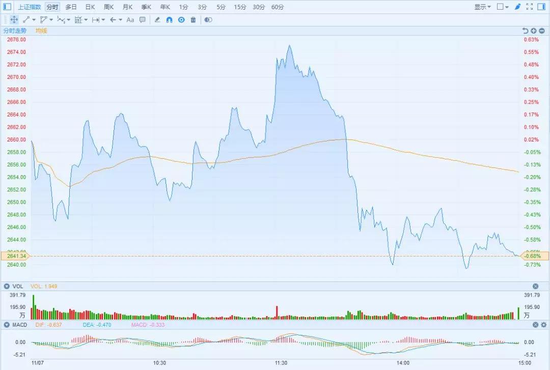 上证综指早盘冲高,涨幅超0.6%,午后回落,收跌0.68%