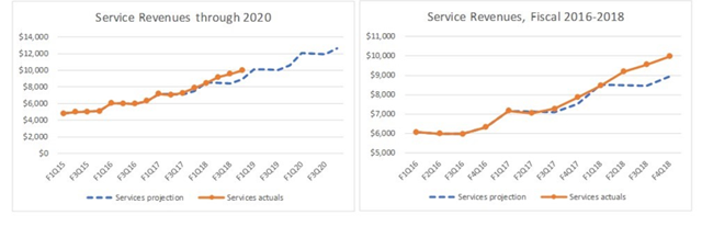 长期而言,公司的成功将更多依赖于服务业务的快速增长, 16年至20年对应营收目标将翻一倍。如下图,当前增长趋势相当不错。另外,对于该业务,至少只有一个分析师表示担忧,原因是担心四季度全球经济下滑。当然,这种担忧过于看重短期波动,长期而言,笔者相信用户基数庞大将在未来几个季度继续驱动高毛利服务业务的增长。尽管Q4并不是最好的季度,但财报会上库克也表示应用商店、云服务、AppleCare、苹果音乐及Apple Pay等各分部不论按地区还是营收都创新高。