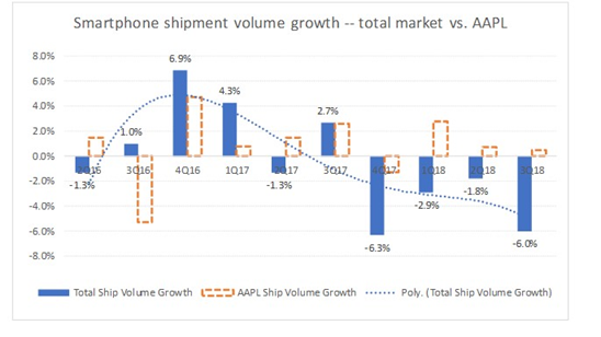 近期笔者曾表示,苹果iphone的营收增速很可能中远期出现下滑,进入18年节假日后销量将面临压力,所以在成熟的智能机市场增长停滞时,公司谨慎给出低于预期的下季指引很合理,所以短期关于iphone销售疲软的消息应该在预期之内。